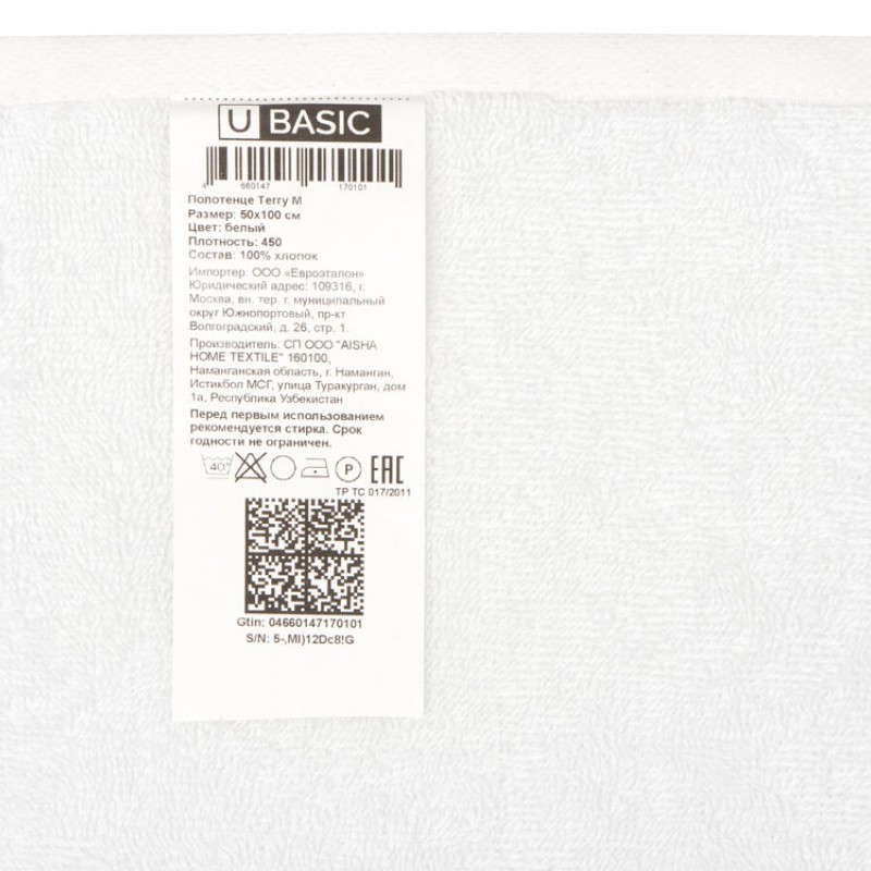Полотенце Terry М, 450, белый