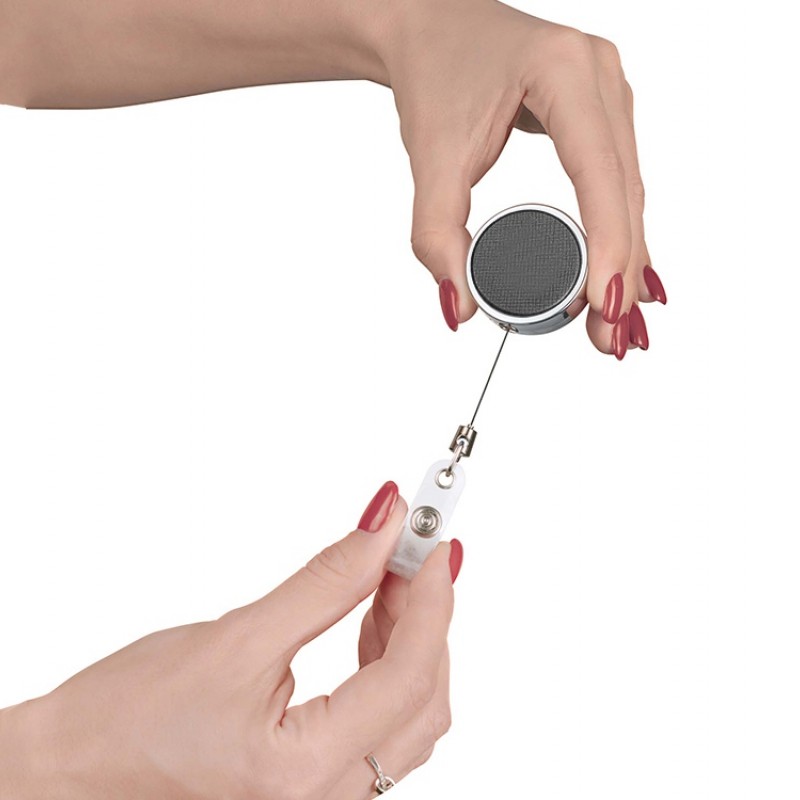 Основное преимущество заключается в том, что он не запутается и отлично подойдёт людям, которые не любят ничего носить на шее. Его можно удобно закрепить на одежде, за ремень или карман брюк, например. При этом, когда пропуск нужно приложить к электронному считывающему устройству, достаточно просто слегка потянуть и будет получена необходимая длина.