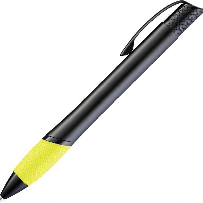 Металлическая шариковая ручка с цветной прорезиненной зоной захвата, черным матовым корпусом и фурнитурой. Европейские объемные стержни 8-0888 uma Extra Class Refill в металлическом корпусе с наконечником из нержавеющей стали и вольфрамово-карбидным шариком (1,0 мм). Длина письма: примерно 10 000 м. Немецкие чернила соответствует стандарту ISO.
