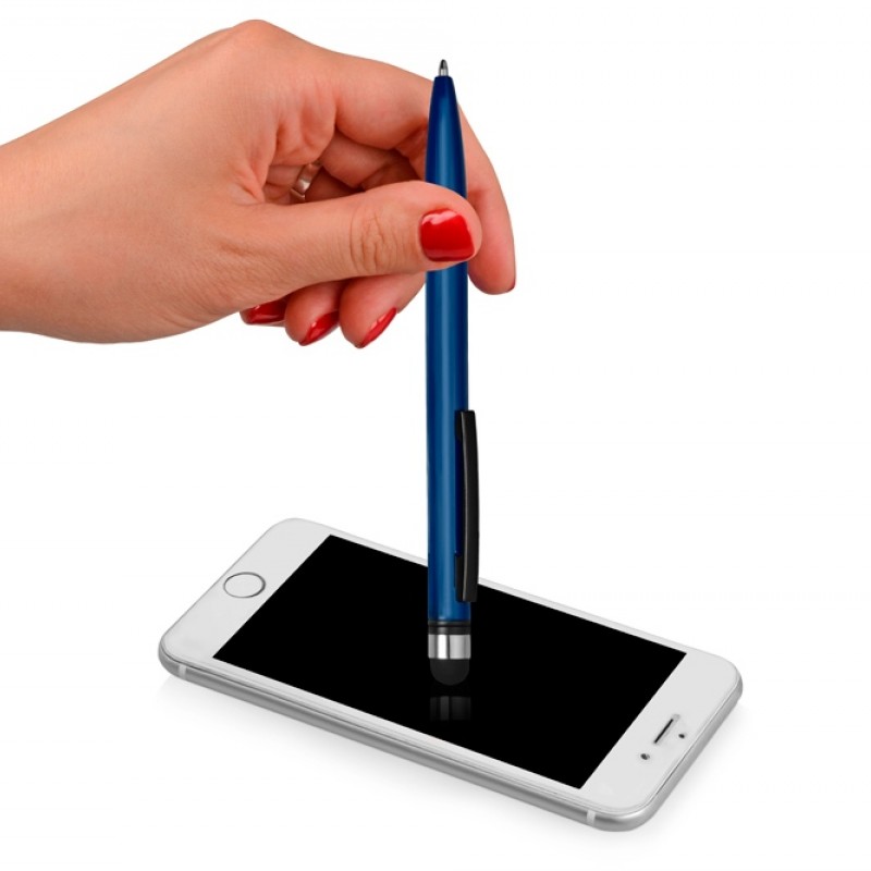 Пластиковая ручка со стилусом. Удачное расположение поворотного механизма предотвращает от случайного появления стержня во время использования стилуса, при этом оставляя большое поле под нанесение на корпусе. Идеальная пара для любого смартфона!