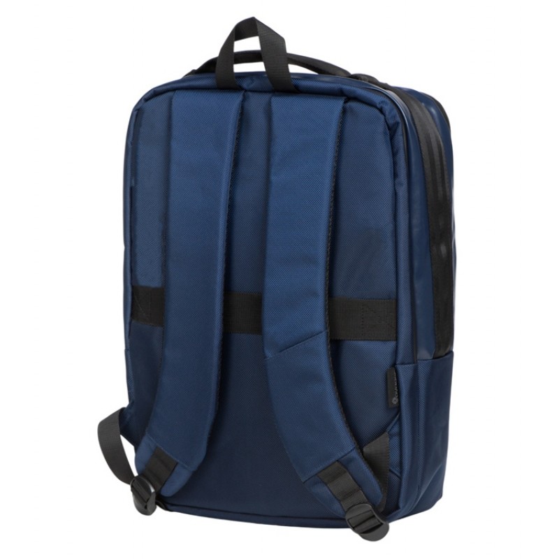 Удобный бизнес-рюкзак для передвижения по городу и деловых поездок состоит из отделения для ноутбука и планшета, большого отделения для одежды с фиксирующими ремнями, 2х наружных карманов на молнии спереди. Конструкция рюкзака продумана до мелочей: внутри большого отделения расположен органайзер для гаджетов и проводов, на спинке есть ремень для крепления на ручку чемодана и регулирующиеся по длине лямки, на лямке - карман для карт или ключей. Водостойкий материал и молнии. В комплекте мешок из спанбонда для хранения и металлический шильд под ваш логотип.