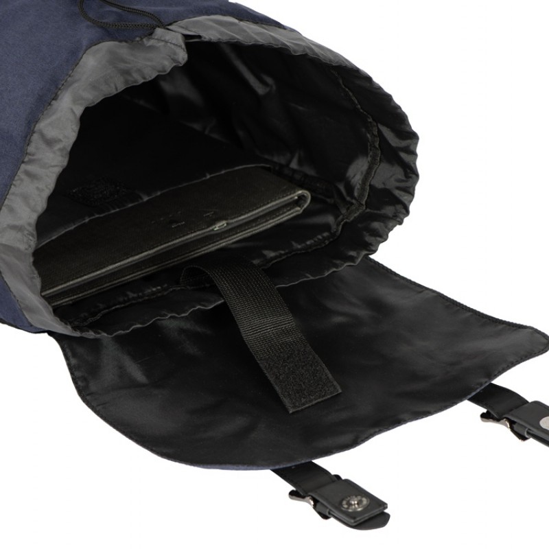 Легкий и вместительный рюкзак закрывается с помощью двух магнитов и стяжки-шнурка. Внутри расположен карман для ноутбука, который фиксируется эластичной лентой на липучке. Снаружи - карман на молнии. Лямки регулируютcя по длине.