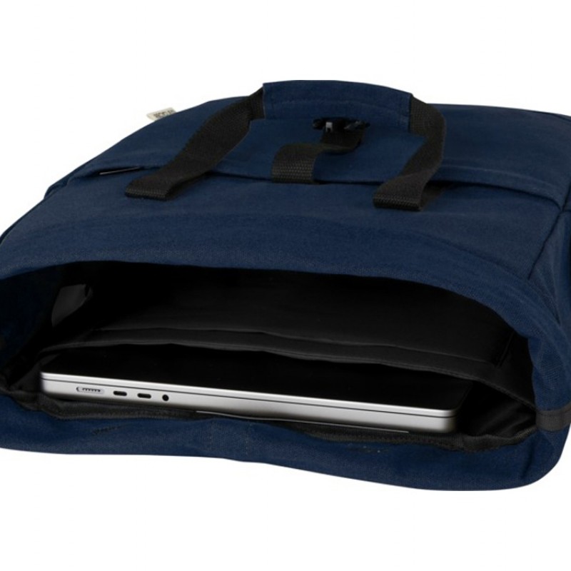 Изготовленный из высокопрочных экологичных материалов, брезента и подкладки из переработанного ПЭТ, соответствующих стандарту GRS, рюкзак Joey со сворачивающимся верхом имеет специальный чехол для планшета и отделение с подкладкой для ноутбука диагональю 15 дюймов. Рюкзак также имеет 2 боковых кармана для воды, один большой передний карман на молнии и сворачивающуюся верхнюю часть на молнии для максимальной вместимости и безопасности. Две усиленные вязанные ручки обеспечивают удобство и простоту ношения в качестве деловой сумки-тоут. Декоративная металлическая пластина может придать логотипу сияние благодаря утонченному матовому покрытию.