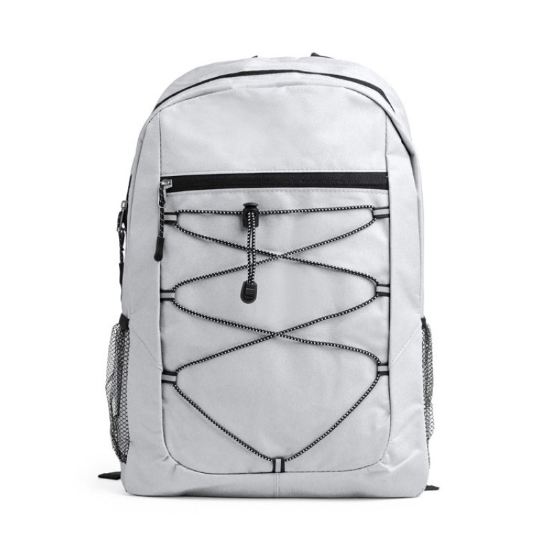 Спортивный рюкзак из полиэстера 600D. Основное отделение и передний карман на молнии. Переднее отделение на эластичном шнуре с сетчатыми боковыми карманами. Мягкая спинка и лямки.