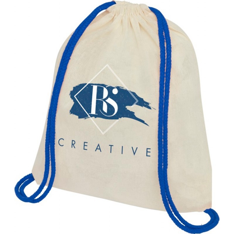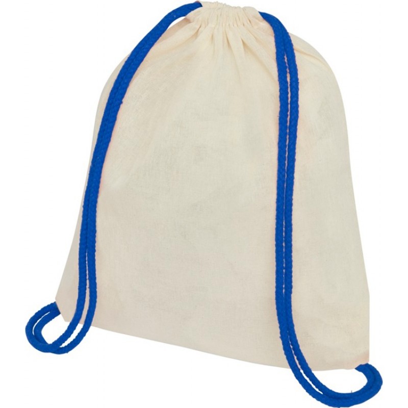 Рюкзак со шнурком Oregon, имеет цветные веревки, изготовлен из хлопка 100 г/м², бежевый/синий