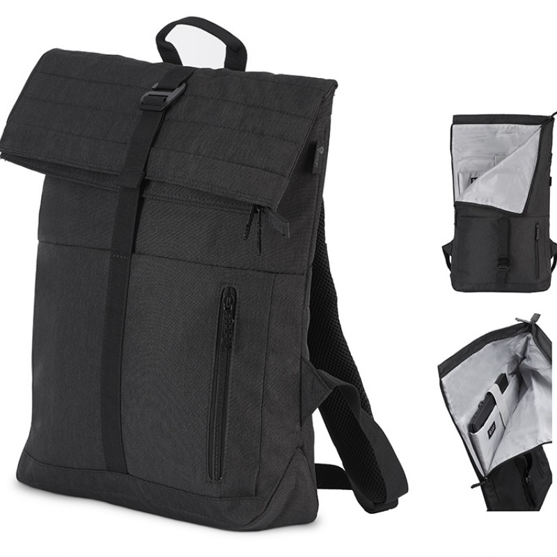 Удобный городской рюкзак с карманом для ноутбука можно использовать в поездках благодаря его вместимости и удобной застежке с металлическим крючком, которая регулируется по степени наполненности рюкзака. Для этого на спинке рюкзака предусмотрен ремень для крепления на ручку чемодана. Благодаря двойным бегункам молния основного отделения открывается сверху и сбоку. Снаружи карман на молнии для хранения мелочей. Лямки регулируются по длине. В комплекте нетканый мешок для хранения.