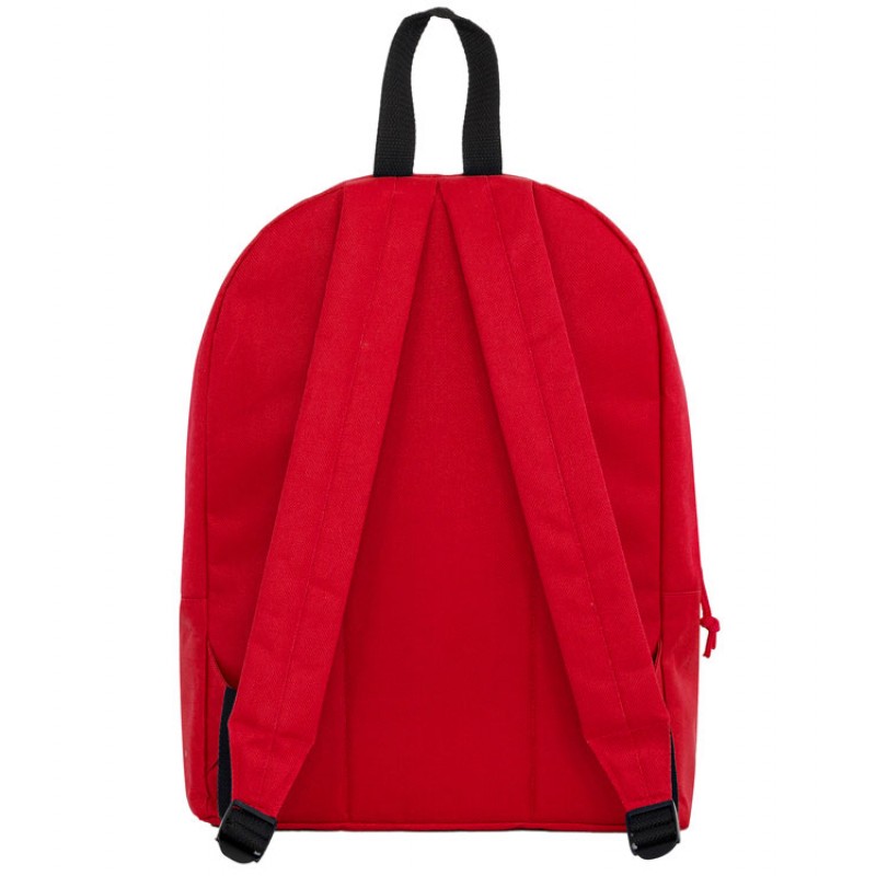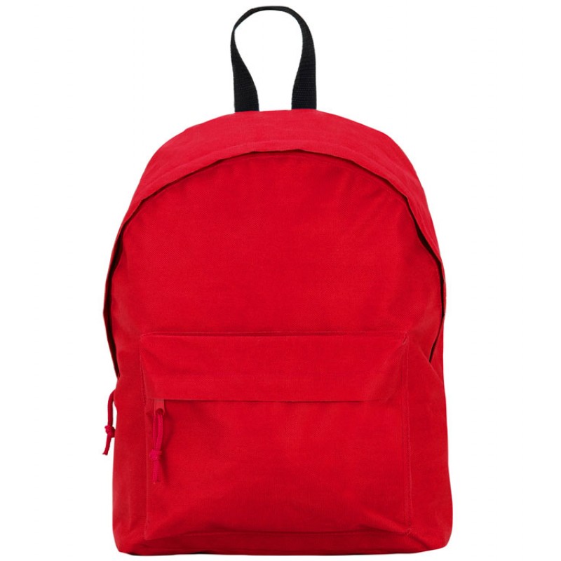 Базовый рюкзак из прочной ткани. Двойной плечевой ремень и контрастная ручка. Два кармана: основной и один спереди с молниями, клапанами и бегунками в тон
