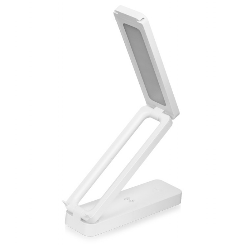 Ультра-портативная лампа на основе LED-элементов освещения с беспроводной зарядкой для устройств. Спрятанные в стойки ножки дополнительно позволяют использовать лампу в качестве подставки для телефона. Лампа оснащена сенсорным включателем - с помощью легкого нажатия можно выбирать один из трех уровней яркости. Легко складывается, принимая компактный размер. Большая зона для декорирования. Питание от USB источника. Кабель USB Type-C в комплекте.