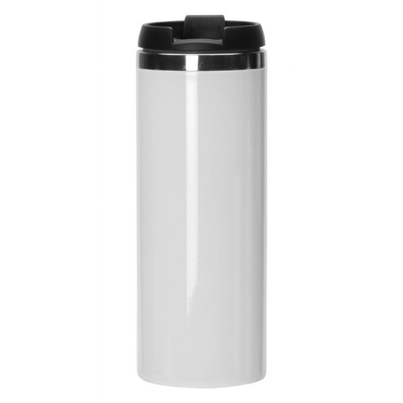 Универсальная термокружка большого объема (420 мл). Сделана из стали с двойными стенками и вакуумной изоляцией, что позволяет сохранять напитки горячими длительное время. Герметичная завинчивающаяся крышка с откидным клапаном. Тем не менее, из-за возможного давления пара на клапан, не рекомендуется переворачивать / хранить вверх дном. Специальное покрытие корпуса предназначено для нанесения изображения методом сублимации.