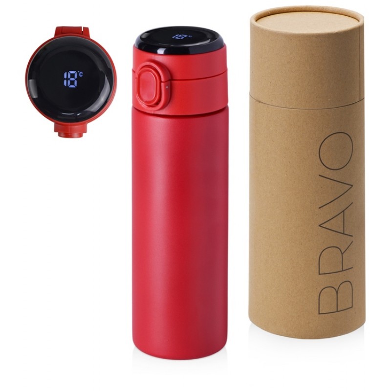 Вакуумная термокружка с медной изоляцией между стенками, которая точно не даст вам обжечься: сенсорный индикатор температуры сообщает о температуре напитка, выводя на дисплей информацию в градусах Цельсия. Что немаловажно, сенсор работает от сменной батарейки, что существенно продлит срок службы Bravo, позволяя не расставаться с полюбившейся термокружкой.