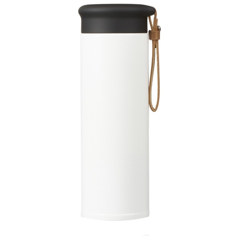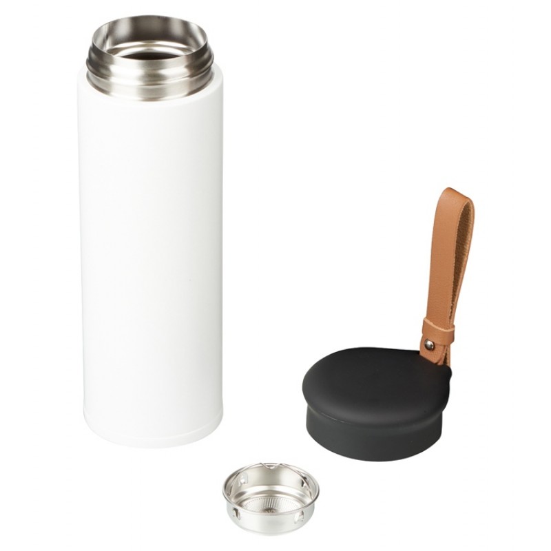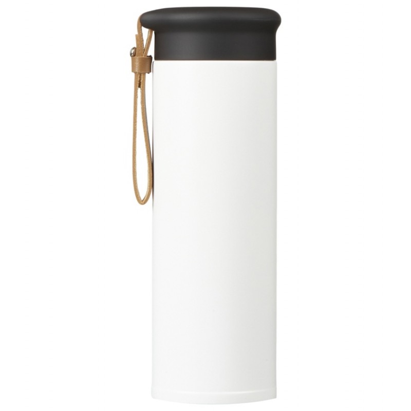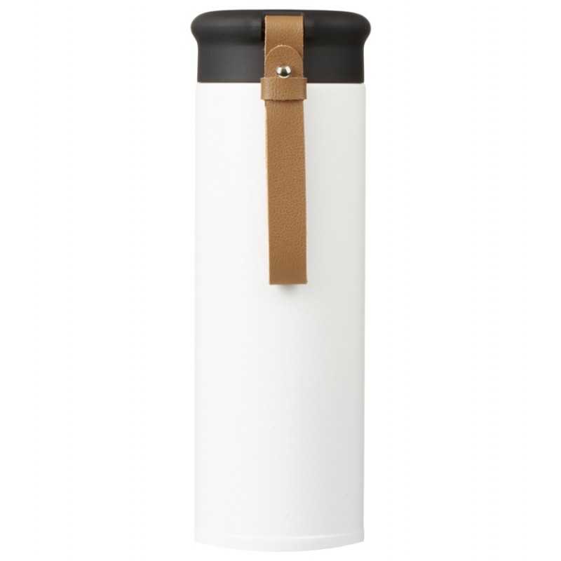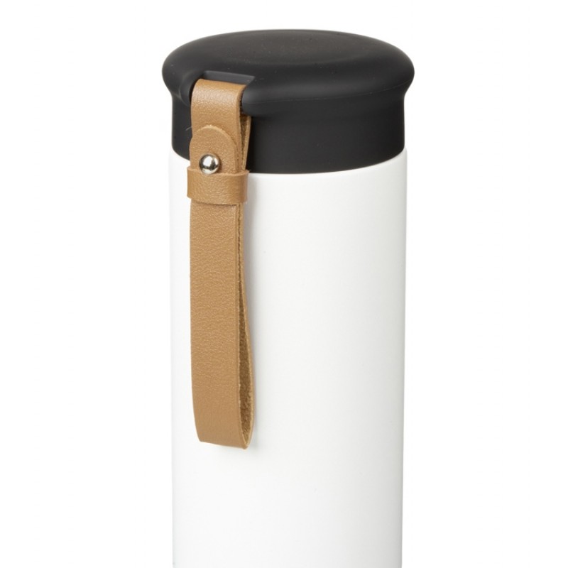 Термос герметично завинчивается на крышку, оснащенную съемным ремешком из качественной ПУ кожи. Крышка имеет прорезиненное покрытие, что создает интересное сочетание текстур в рамках одной модели. Корпус имеет элегантную рельефную поверхность с антискользящим эффектом.