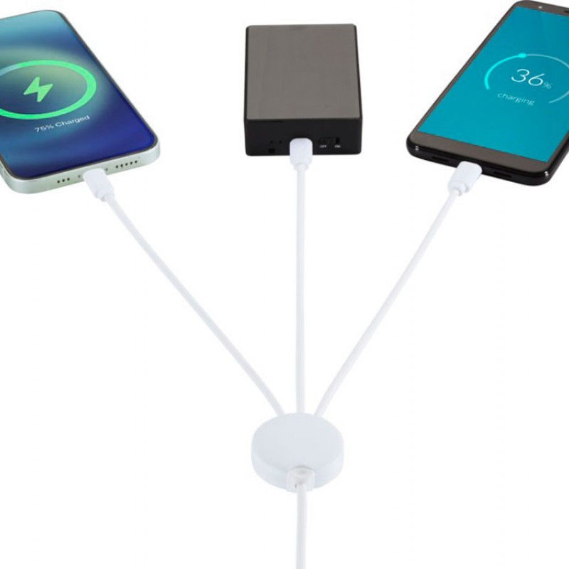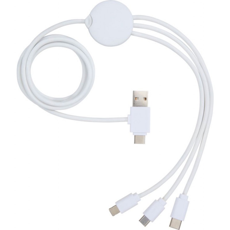 Зарядный кабель с противобактериальной присадкой и 5 разными разъемами: Вход Тип-C, вход USB-A, выход Тип-C, выход iOS и выход micro USB. С возможностью использования кабеля с устройствами с выводом Тип-C, которым оснащены телефоны и компьютеры MacBook нового поколения. Длина кабеля составляет 100 см. Противобактериальная присадка способна эффективно снижать уровень бактерий, присутствующих на поверхности материала, с высокой эффективностью подавляя рост бактерий и грибков, создающих неприятные запахи, приводящих к окрашиванию и деградации текстильных и пластиковых изделий. Протестировано в соответствии с ISO 20743:2013. ПВХ, Пластик ABS.