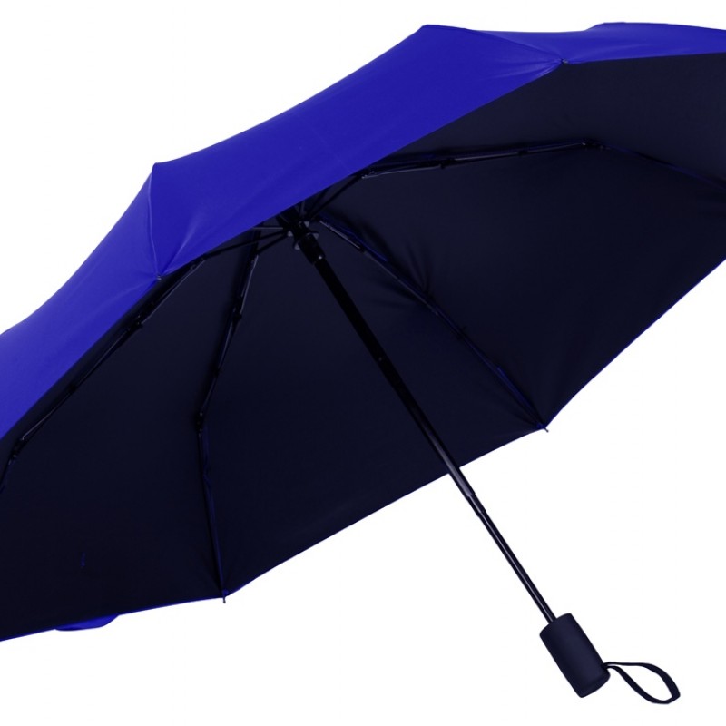 Особенностью этого зонта-автомата является двухцветный купол повышенной плотности и прочности. Под таким зонтом не страшен никакой дождь, даже с порывами ветра. На ремешок-застежку на липучке шириной 3 см можно нанести логотип. Эластичный шнурок на ручке служит для дополнительного удобства при хранении.