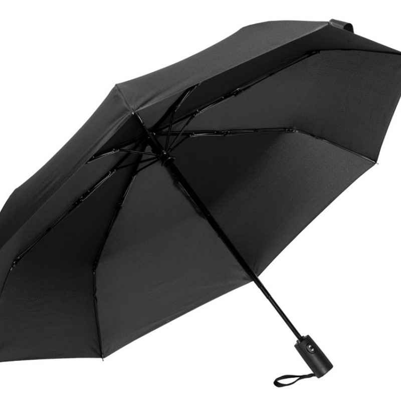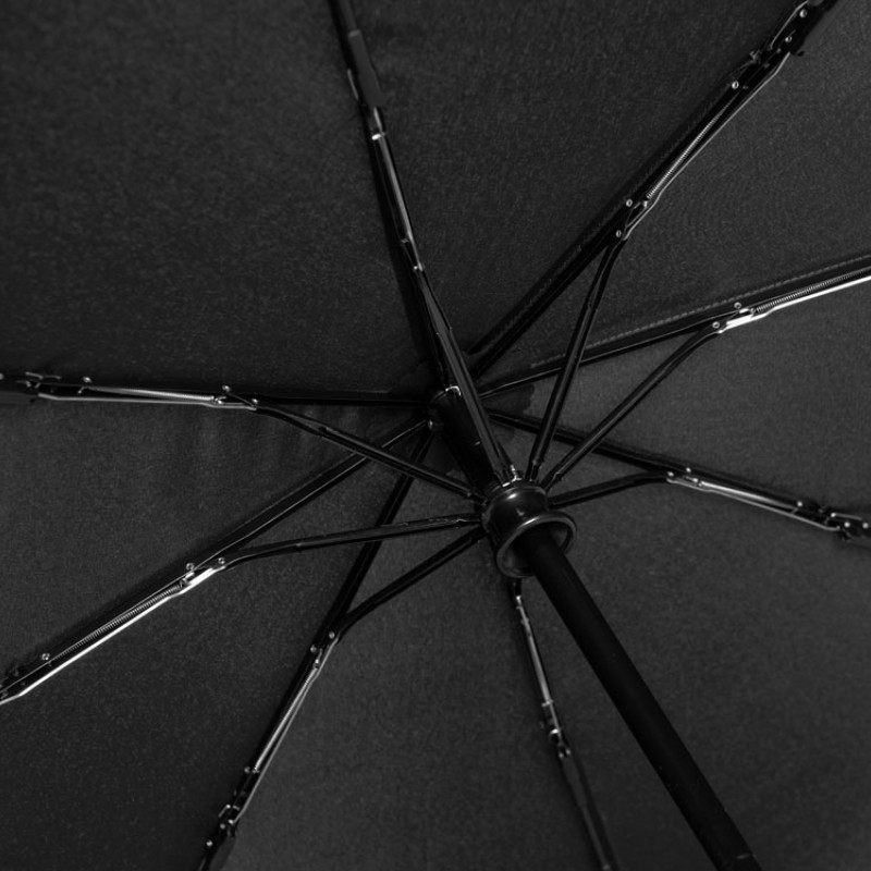 Купол зонта выполнен из переработанного пластика. Гибкие спицы из стекловолокна делают зонт стойким к порывам ветра. Удобная ручка софт тач. Фиксирующая купол застежка на липучке шириной 3 см - дополнительная опция для нанесения вашего логотипа.