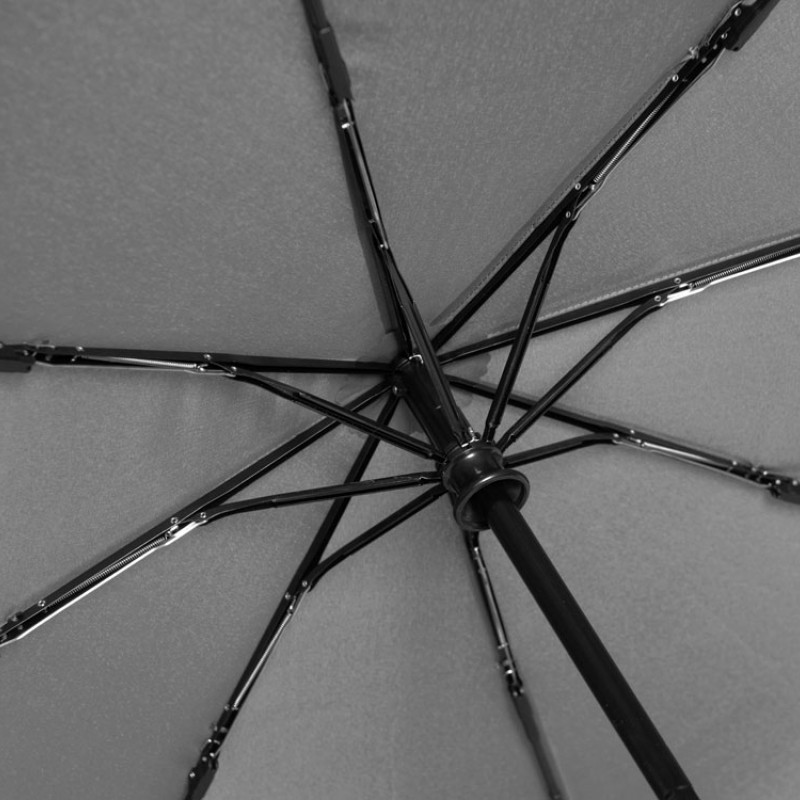 Купол зонта выполнен из переработанного пластика. Гибкие спицы из стекловолокна делают зонт стойким к порывам ветра. Удобная ручка софт тач. Фиксирующая купол застежка на липучке шириной 3 см - дополнительная опция для нанесения вашего логотипа.