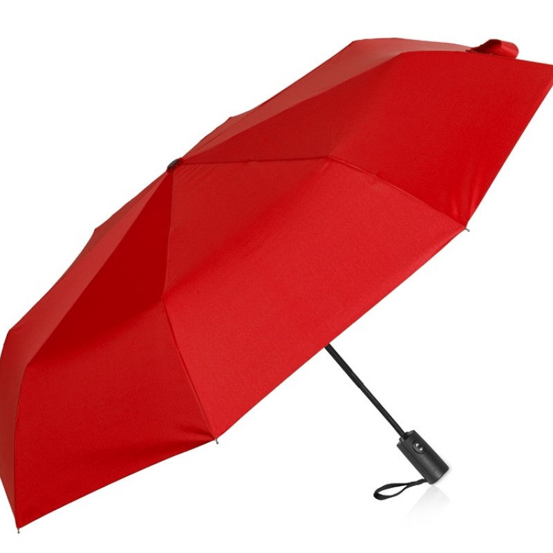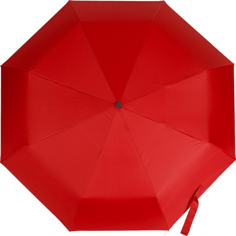 Купол зонта выполнен из переработанного пластика. Гибкие спицы из стекловолокна делают зонт стойким к порывам ветра. Удобная ручка софт тач. Фиксирующая купол застежка на липучке шириной 3 см - дополнительная опция для нанесения вашего логотипа.