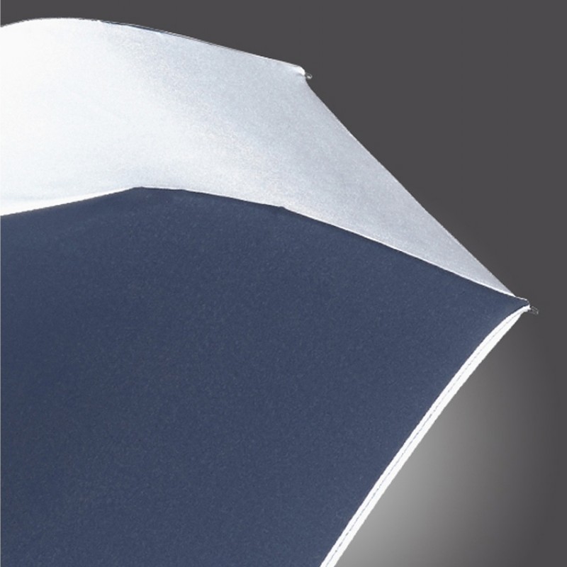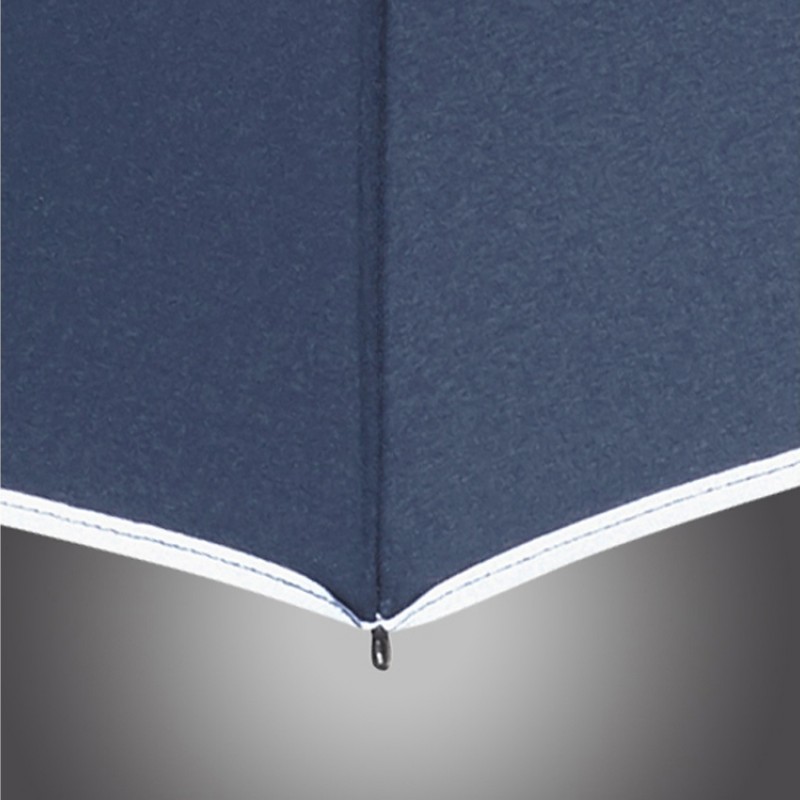 У этого зонта на двух диагональных клиньях и на отделке чехла имеется светоотражающее нанесение. Это обеспечивает дополнительную защиту в темное время суток. Мягкая пластиковая ручка с удобной кнопкой открытия и защита от порывов ветра делают зонт незаменимым аксессуаром.