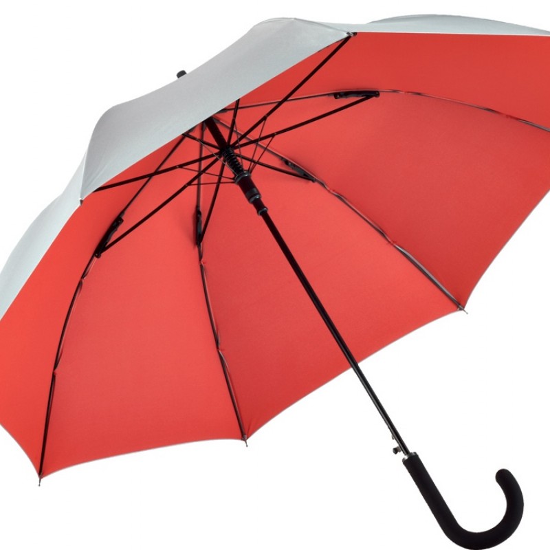 Двухцветный купол этого зонта-трости делает его ярким аксессуаром. Плавно открывается нажатием кнопки на ручке. Каркас из особо прочной гальванизированной стали.