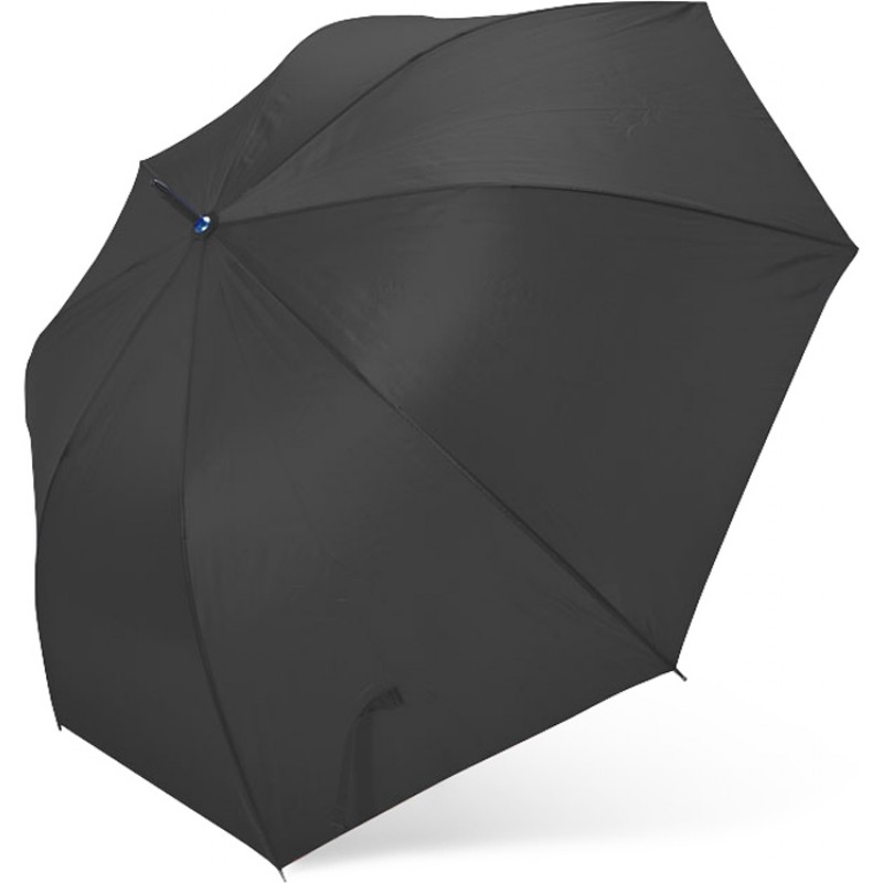 Зонт с кнопкой автоматического открытия размера XL с ручкой, стержнем и наконечниками черного цвета. Длинные стекловолоконные спицы. Ручка из EVA. 130 см в диаметре.